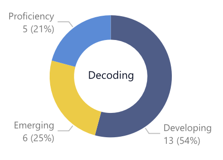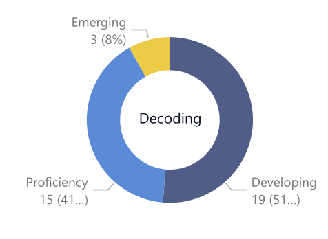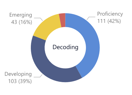 Decoding is an area of great attention in our primary grades, so it came as no surprise that as a whole school we would have a large number of students still in the developing and emerging stages. If we compare Grade 1 to Grade 3 we can already see how the strong literacy practices of our teachers make a big difference building decoding skills for our students.